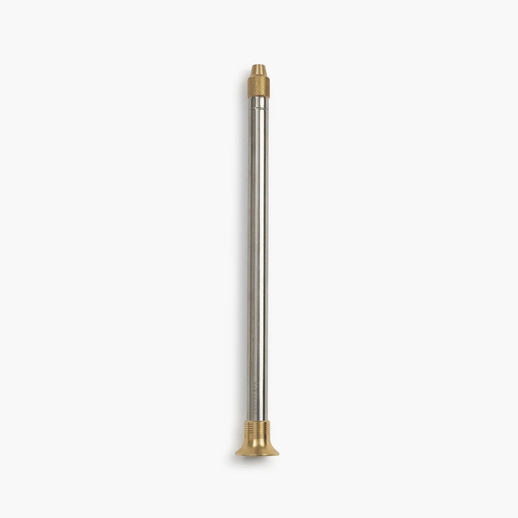 Brass mouthpiece and output nozzle, stainless steel telescoping tubes, plastic one-way valve
