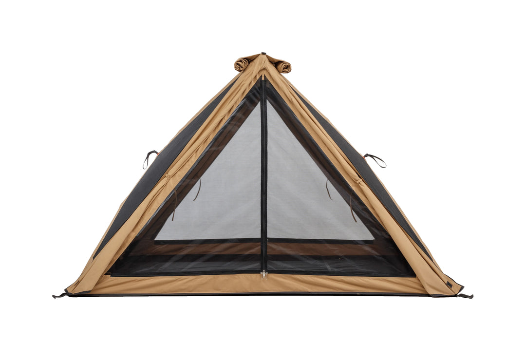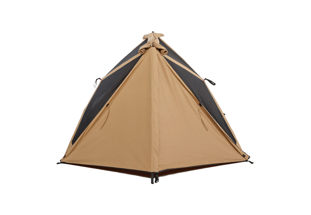 Crafted from Tentex® PC21 technical cotton canvas (210 gr/m²) a premium, renewable fabric developed in Europe (65% polyester, 35% cotton) the tent is UV-resistant, colourfast, water-repellent, mold and rot resistant, and still highly breathable for ultimate comfort in any weather.