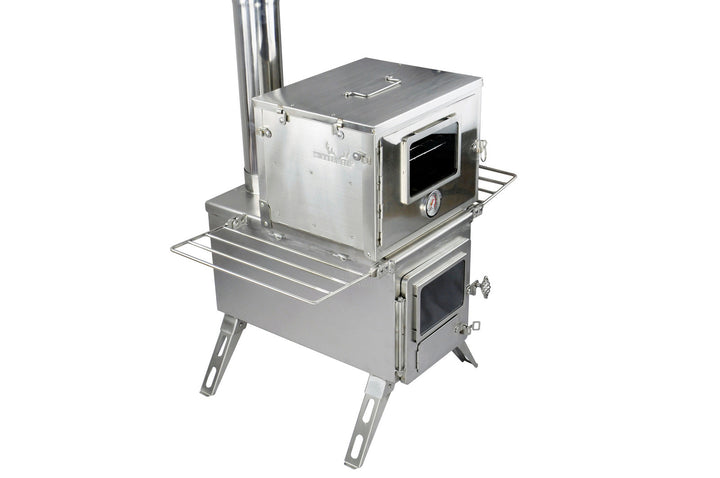 Compatible with any Winnerwell® Wood Burning Stoves, the Fastfold Oven packs flat for compact storage, and quickly assembles to provide a functional camp oven that can bake anything from biscuits to brownies. To use, simply place the oven on the cook top of a Winnerwell® stove. A glass viewing window and integrated thermometer help you dial in the temp and keep an eye on baking foods.